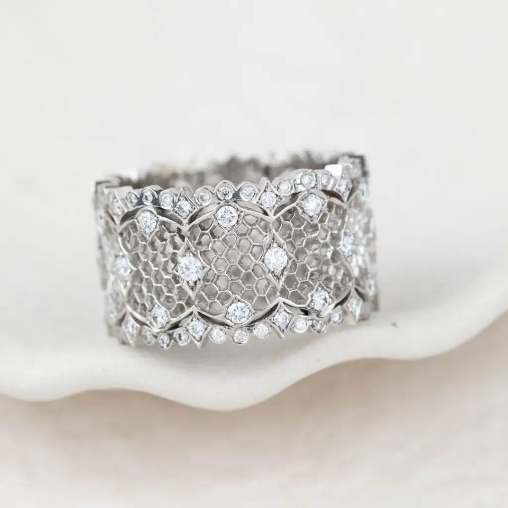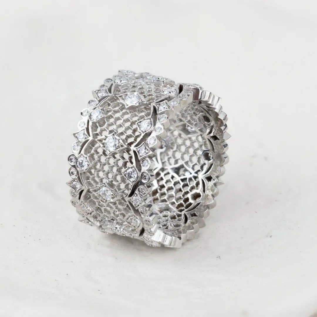 Nido di Api (nido de abejas), entramado de pentágonos muy usado en la joyería Florentina, técnica que requiere de mucha precisión, delicadeza.