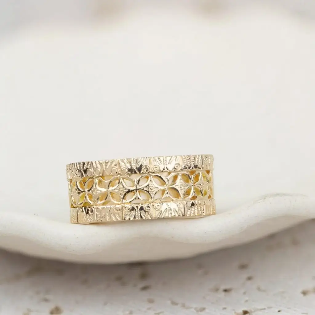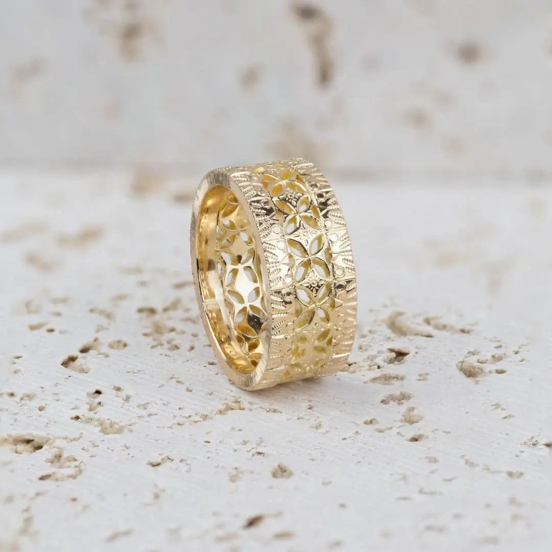 Transformación y reciclaje de joyas antiguas en un precioso anillo de estilo Florentino, con un grabado único hecho a mano.